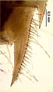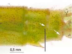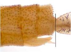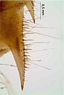 de las espinas de los segmentos abdominales S9 y S10 en I. elegans, claramente mayores que los de I.