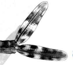 — Proctos traslúcidos de color claro, alargados y acabados en un extremo