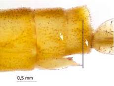 Apéndices sexuales de las hembras alcanzando el extremo distal del S10,
